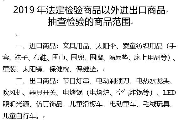 海關(guān)總署公告2019年第132號(關(guān)于開展2019年法定檢驗商品以外進(jìn)出口商品抽查檢驗工作的公告)